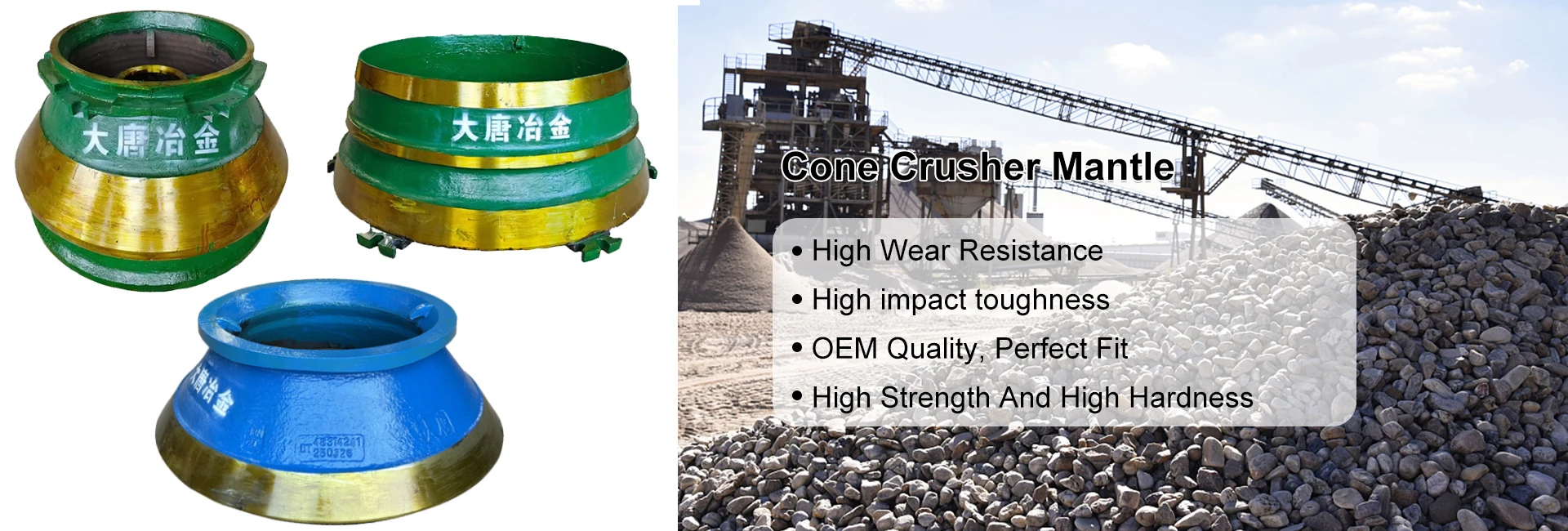 Mn18Cr2 Trituradora de cono Repuestos Manto y revestimiento de tazón Trituradora Revestimiento de cono para la venta